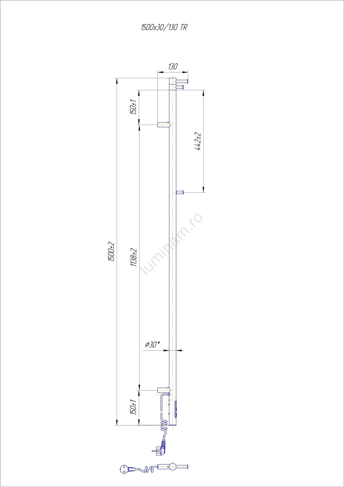 Radiator pentru baie RAY 35W/230V 150x30 cm IP44 inox/antracit