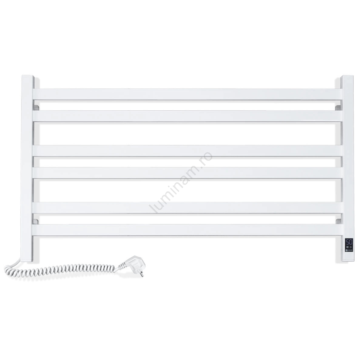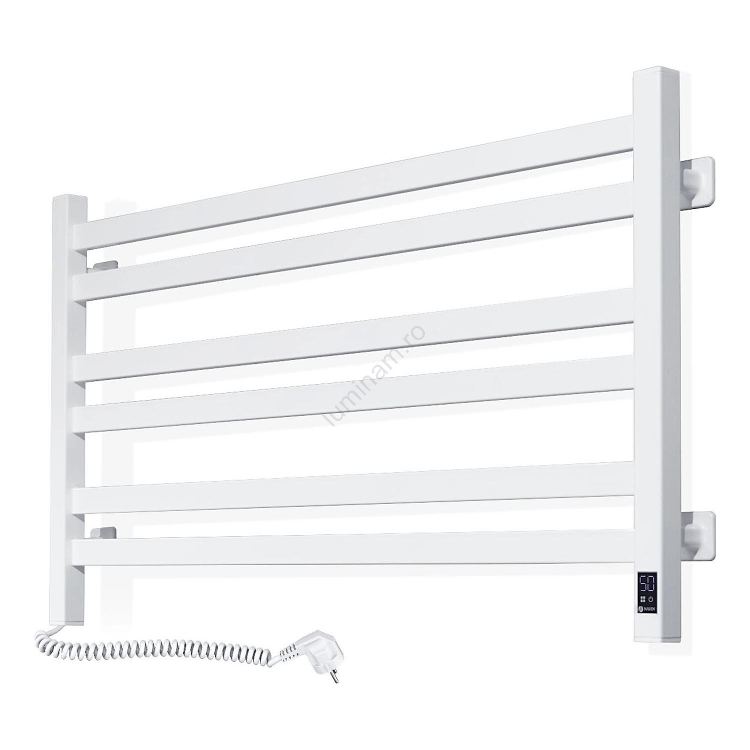 Radiator pentru baie tip scară AVANGARD cu termostat — 300 W/230 V, 50,6 cm, IP44, alb, versiune stânga, design cu colțuri drepte