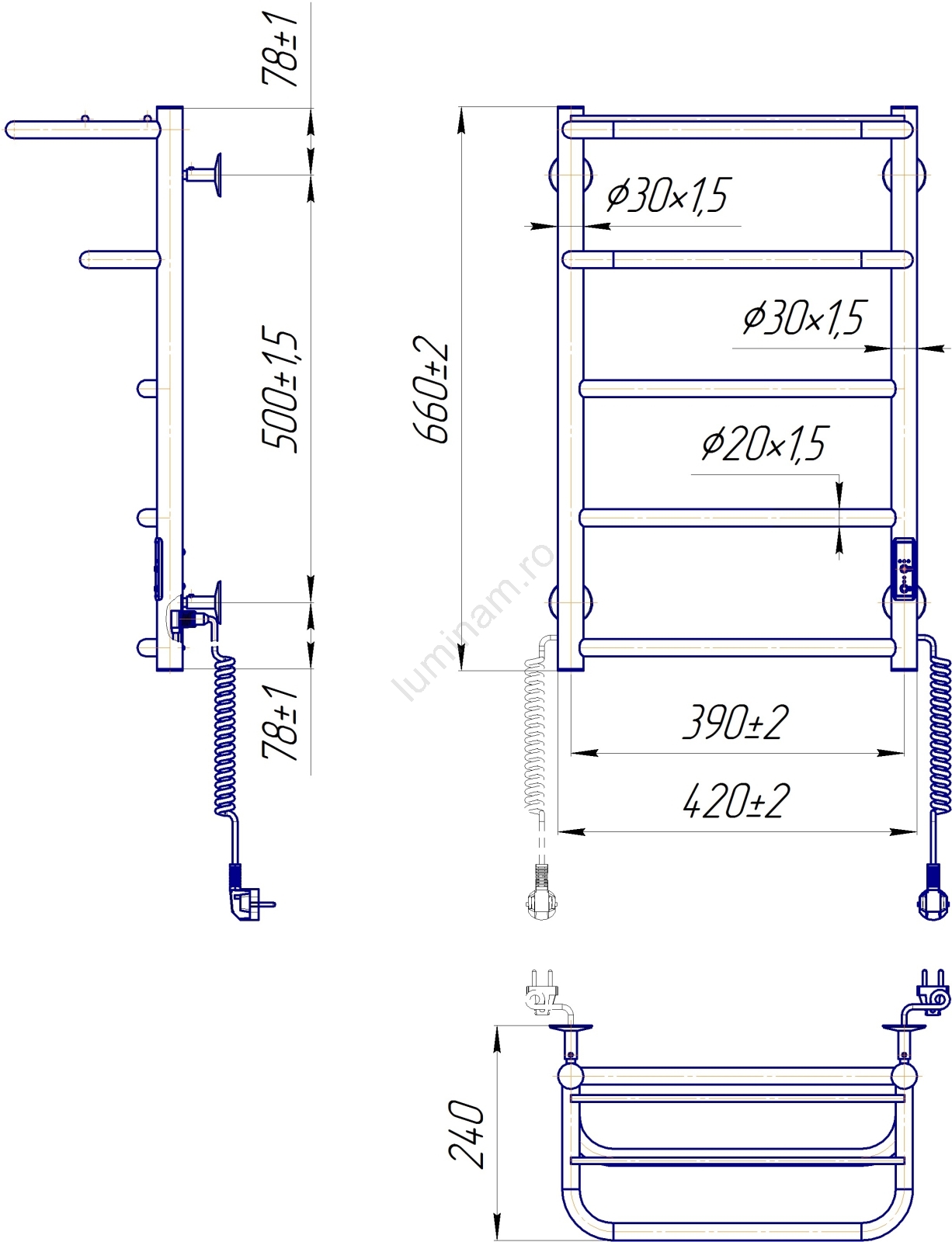 Radiator pentru baie tip scară HOTEL 75W/230V 66x42 cm inox/crom, montare pe dreapta