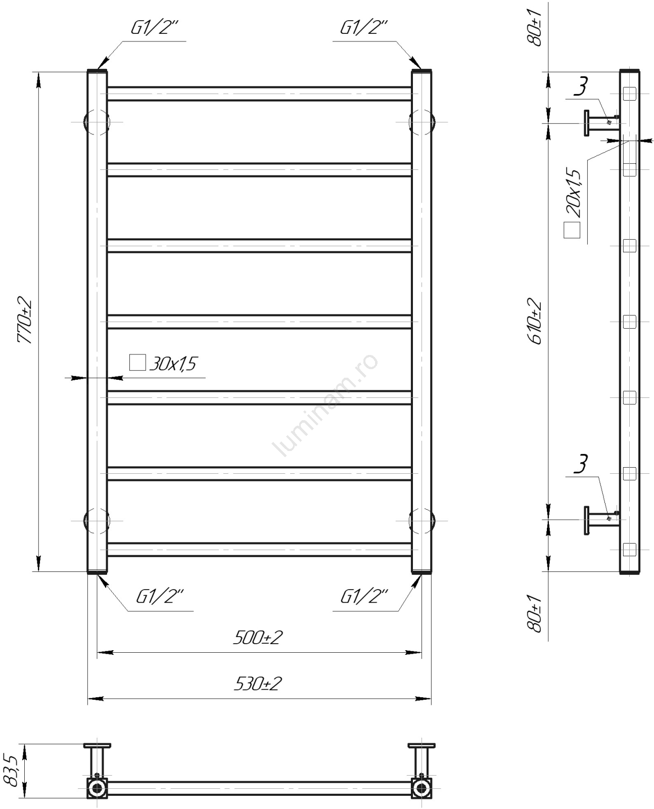 Radiator port-prosop pentru baie INOX TOKIO, 161 W / 230 V, 77 x 53 cm, inox/antracit