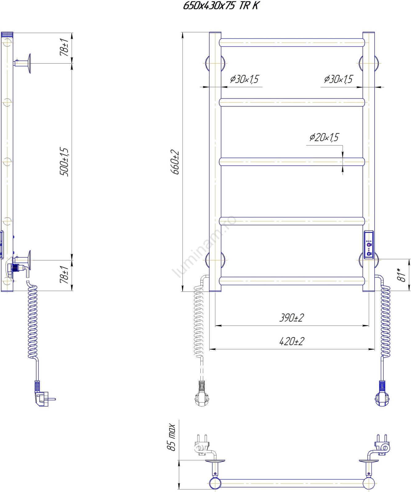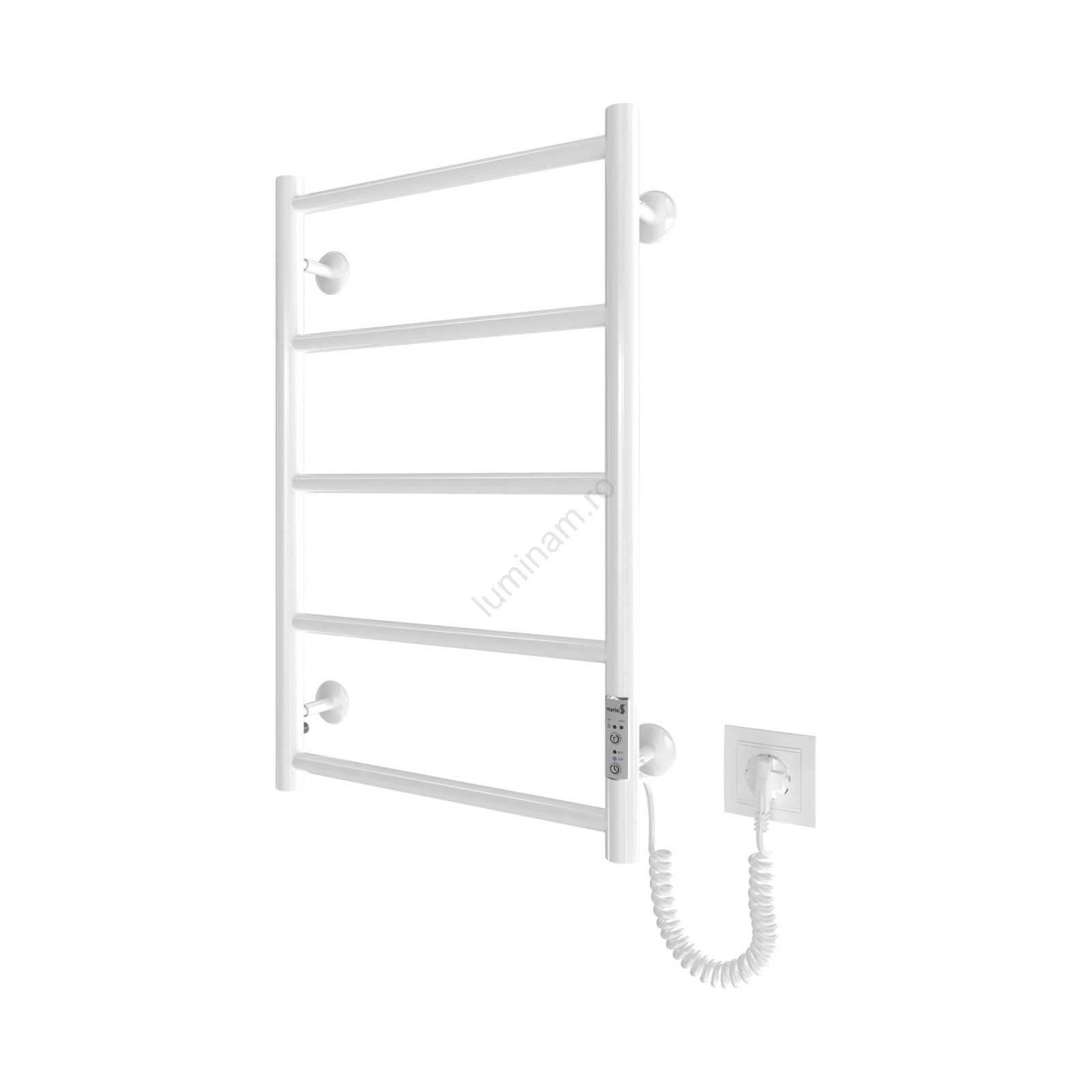 Radiator pentru baie tip scară CLASSIC, 65W/230V, 66x42 cm, inox/alb, montare pe partea dreaptă