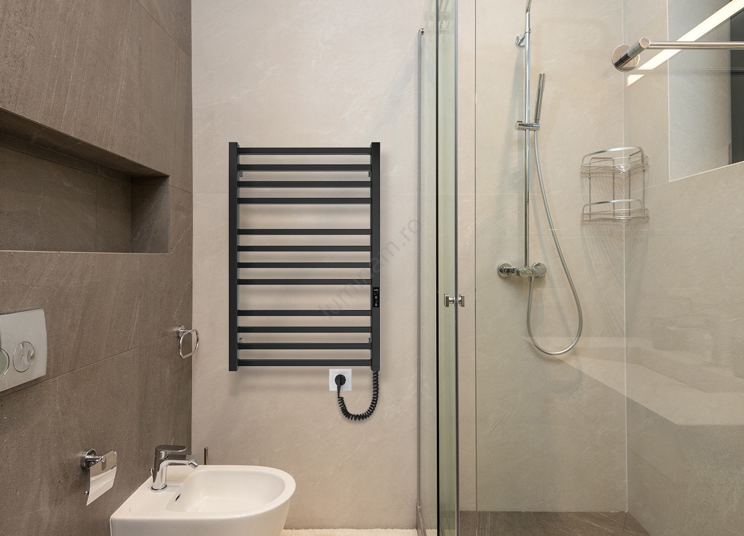 Radiator tip scară pentru baie HF LONDON, 165 W, 230 V, 77 x 53 cm, negru, racord pe partea dreaptă