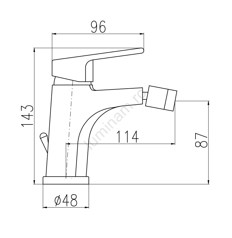 • Baterie pentru bideu montată pe lavoar, cu evacuare.