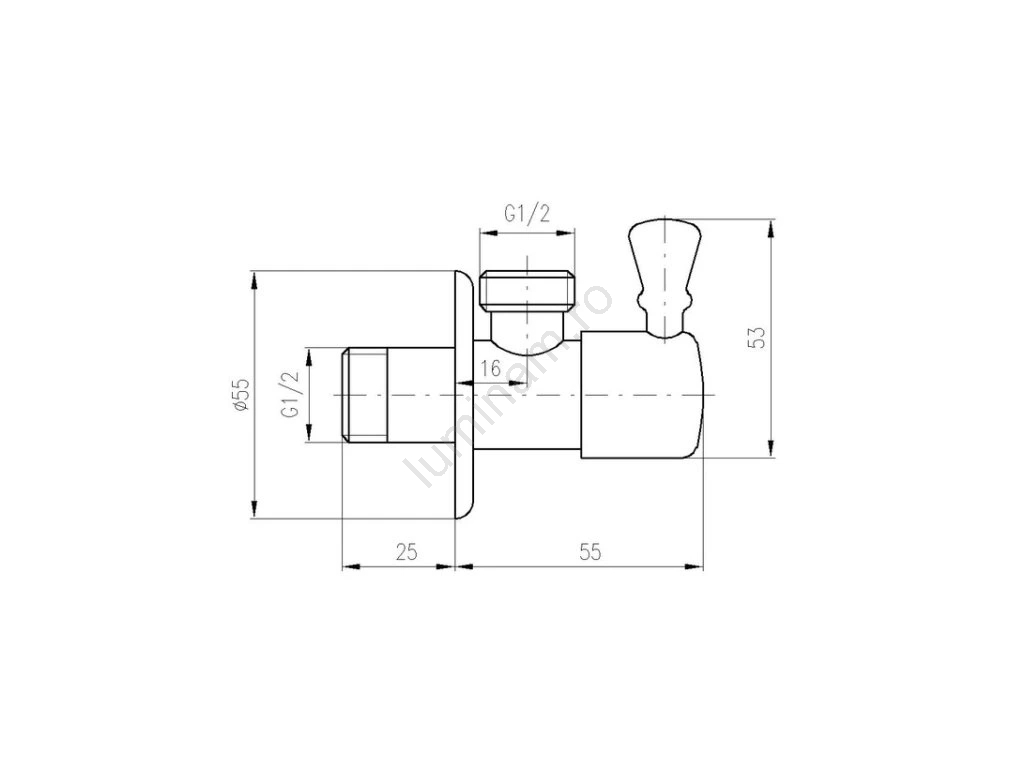 • Valvă unghiulară fabricată din alamă.