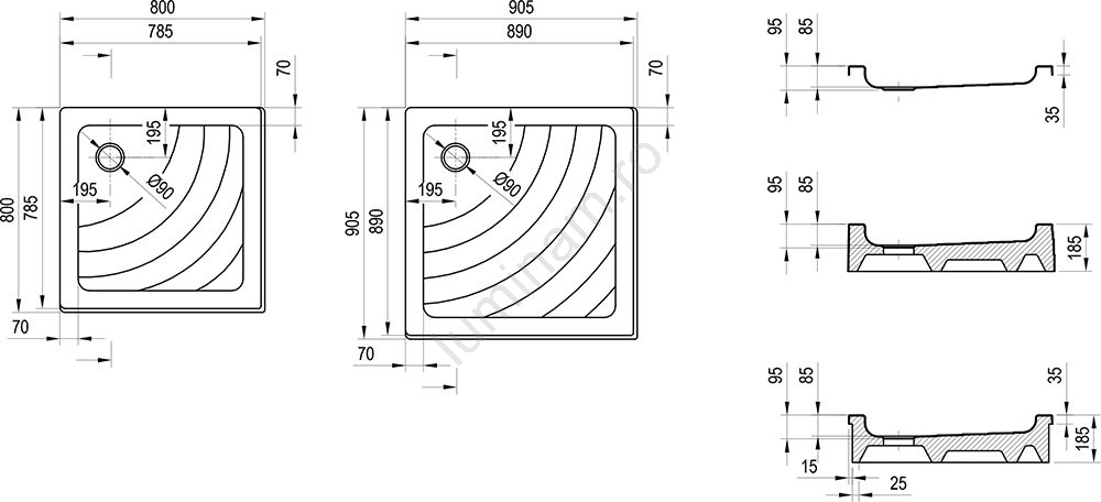 • Tavă de duș pătrată Angela.