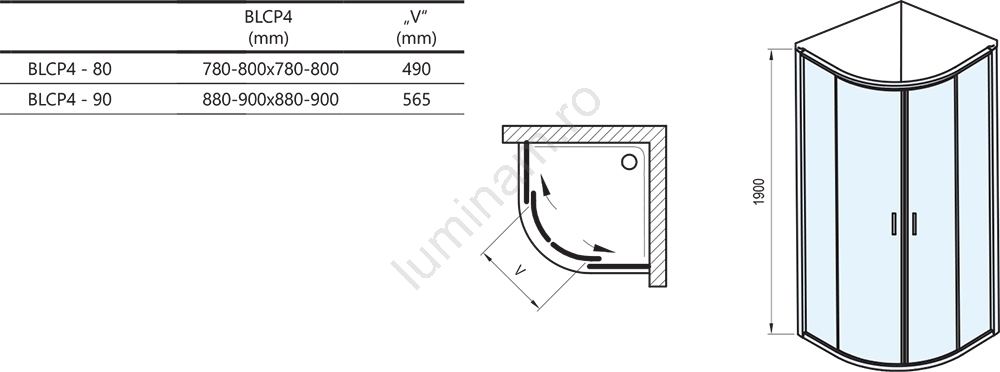 • Cabina de duș este potrivită pentru montaj într-un colț placat al băii pe cădițe de duș Ravak Ronda, Elipso, Elipso Pro, Elipso Pro Flat, Elipso Pro Chrome, sau direct pe pardoseală cu canal de scurgere sau cu gură de scurgere.