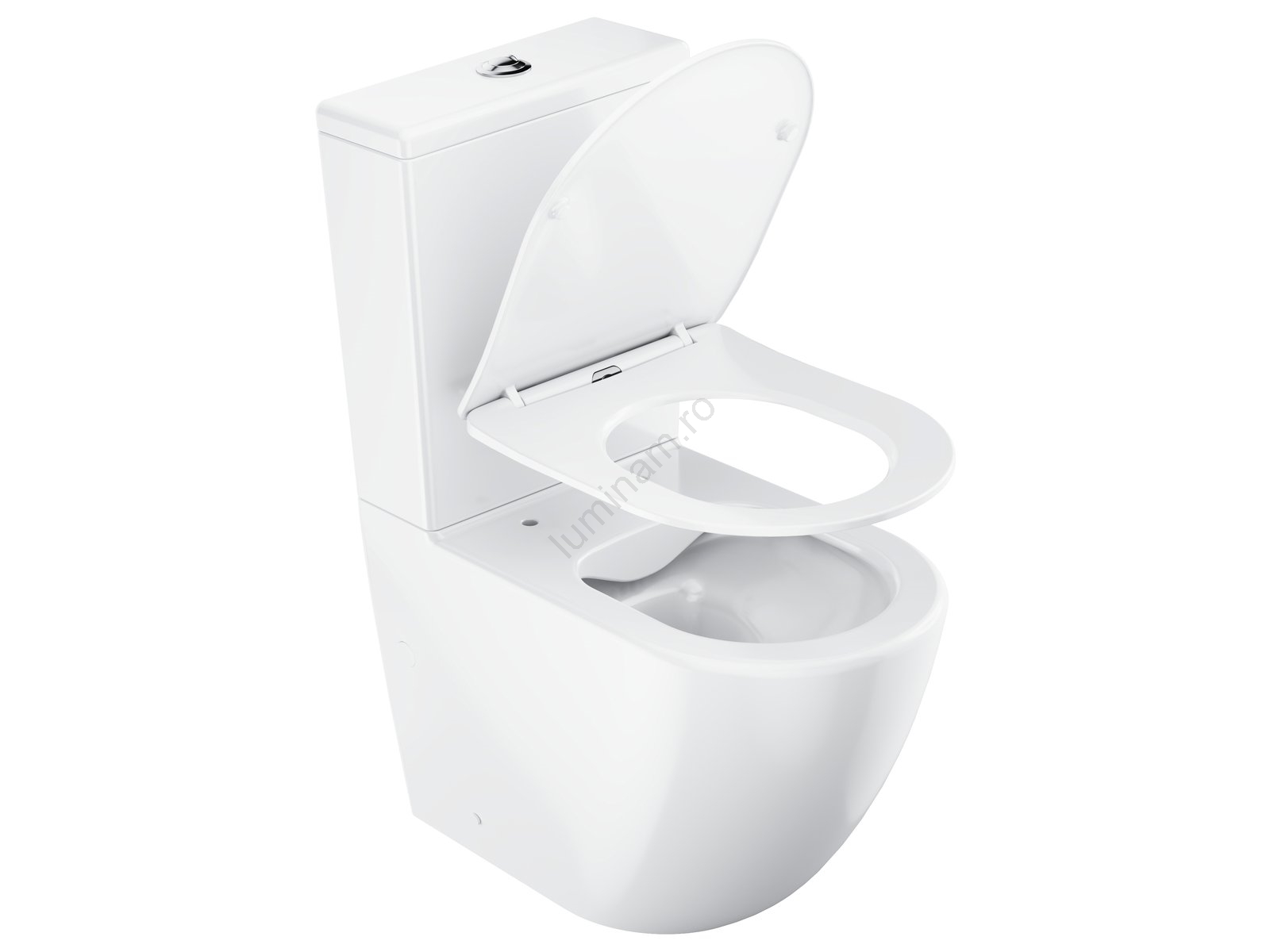 • Este echipat cu tehnologia RimOff (fără margine de clătire), care asigură clătirea completă a suprafeței și un nivel maxim de igienă.