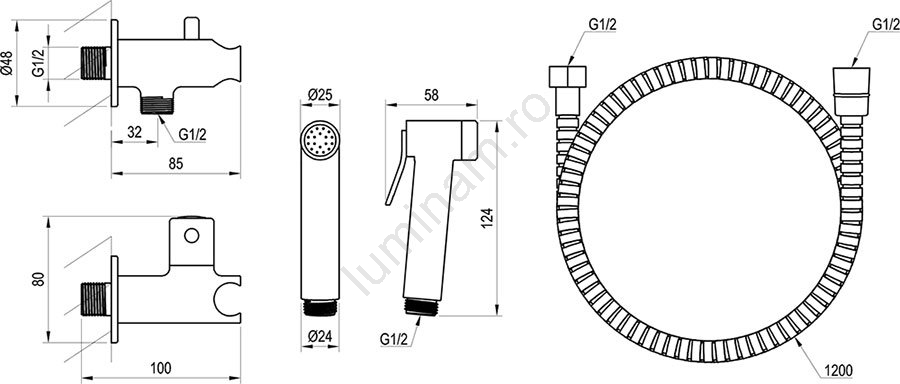 • Acest set este potrivit pentru instalarea în toalete unde nu există spațiu pentru lavoar.