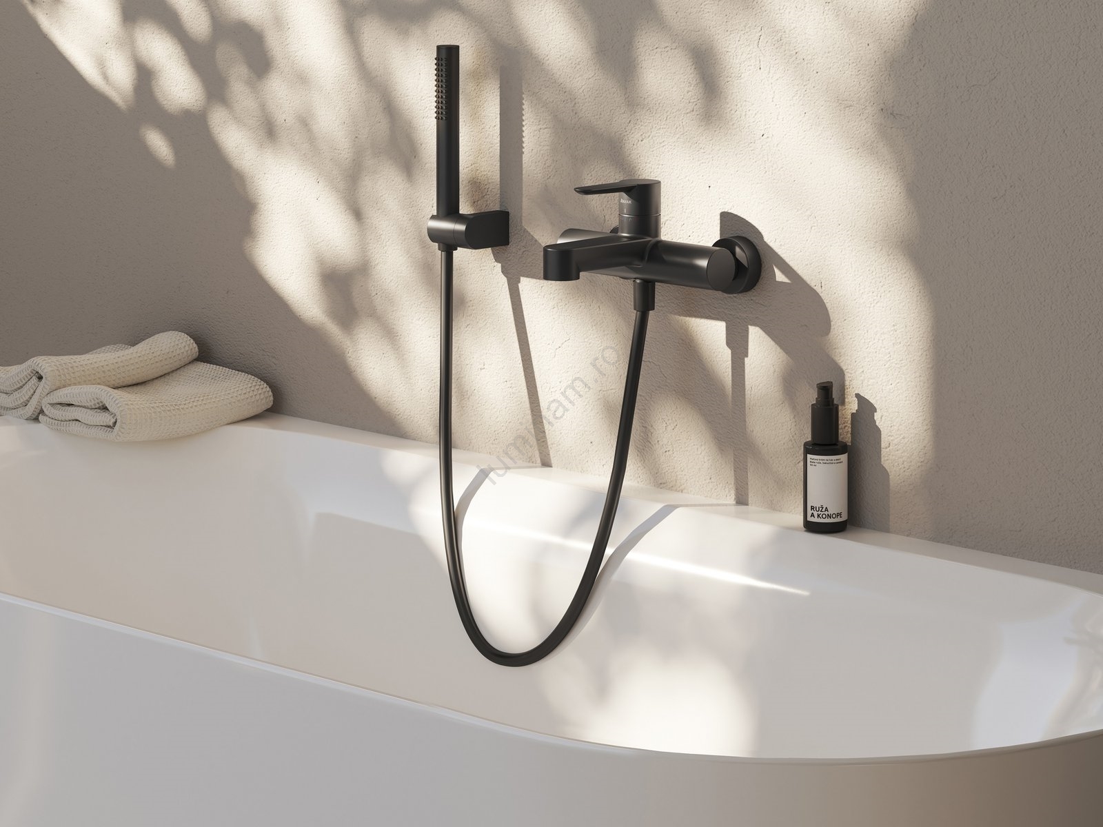 • Baterie monocomandă pentru cadă în finisaj negru.