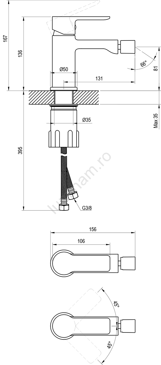 • Racorduri flexibile: 450 mm, filet G3/8.