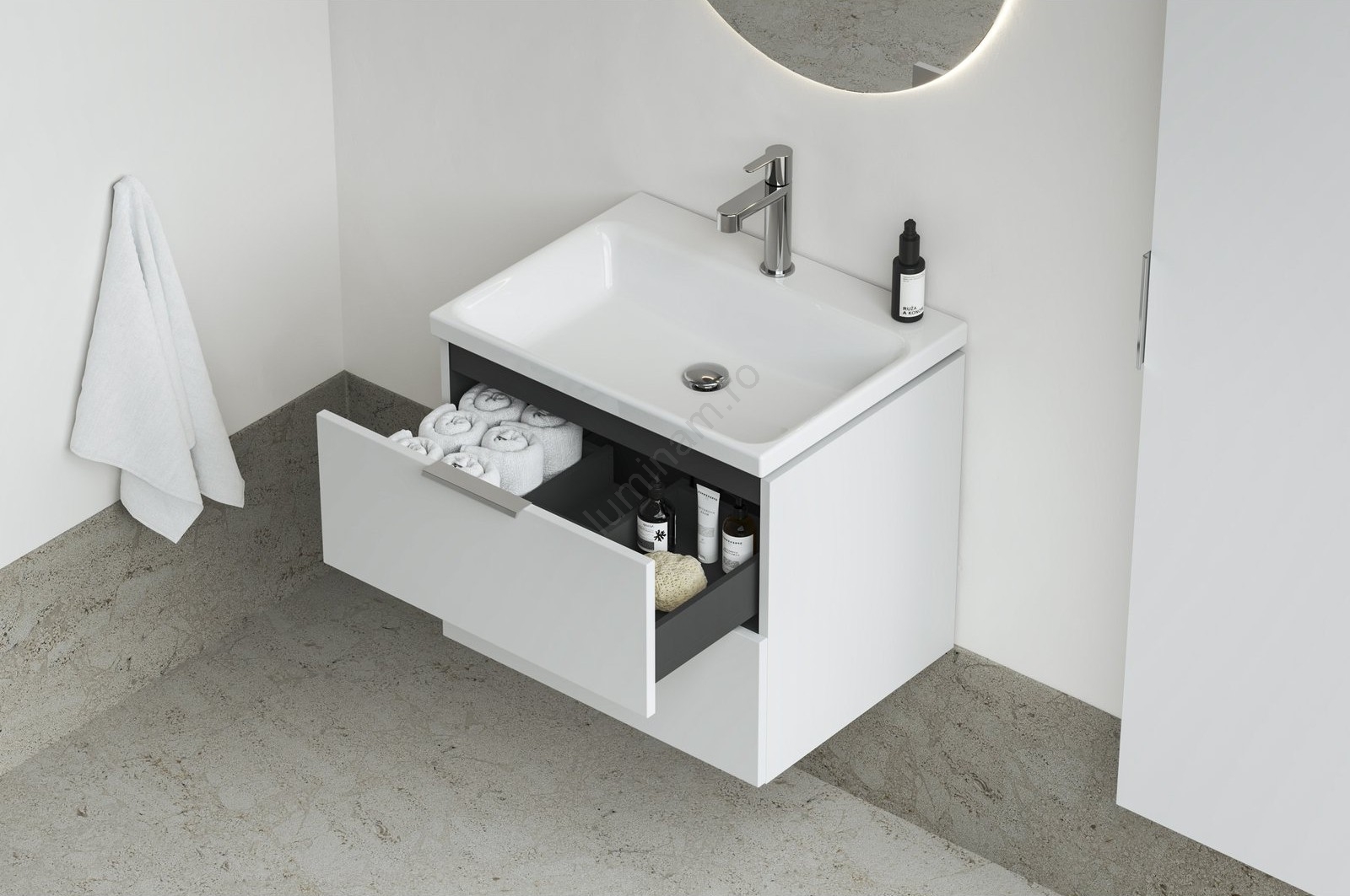 • Finisajul alb al lavoarului oferă o senzație de curățenie și atemporalitate, potrivindu-se oricărui interior de baie.