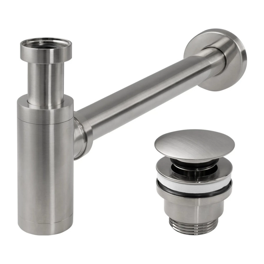 • Sifon din alamă de înaltă calitate cu scurgere universală pentru chiuvetă cu sistem CLICK-CLACK.