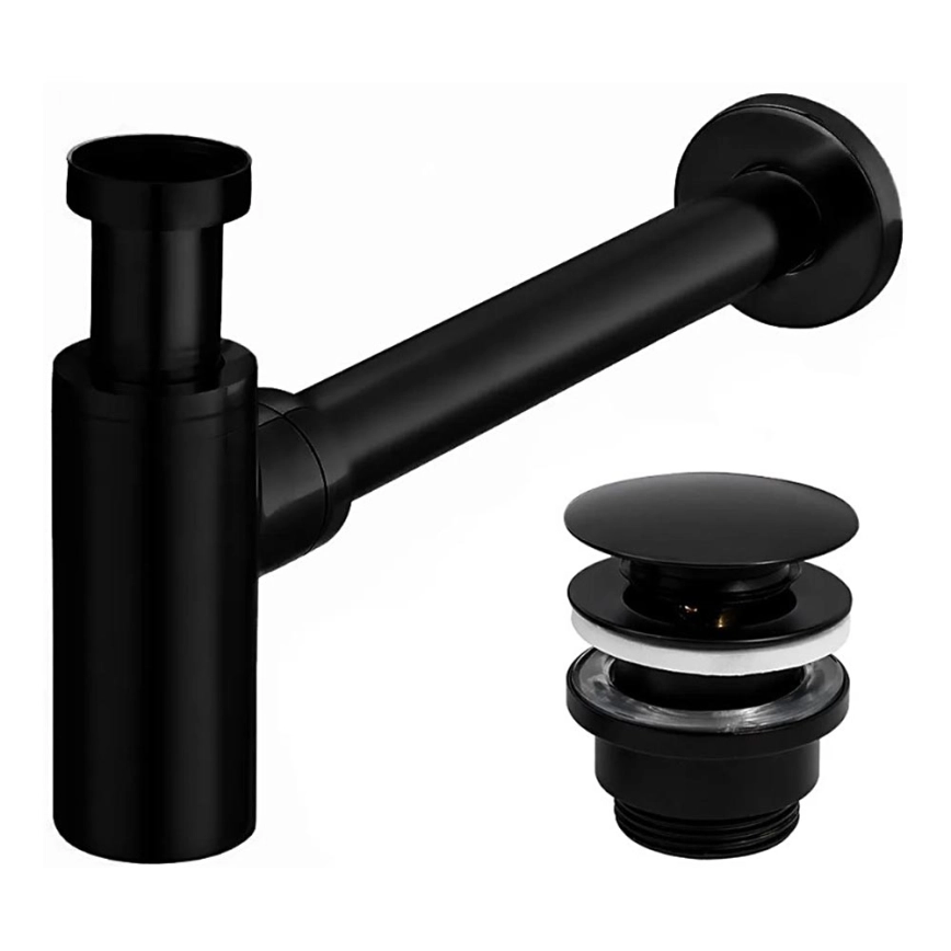 REA-A5215 - Sifon pentru lavoar cu evacuare CLICK-CLACK, Ø 6,4 cm, negru mat