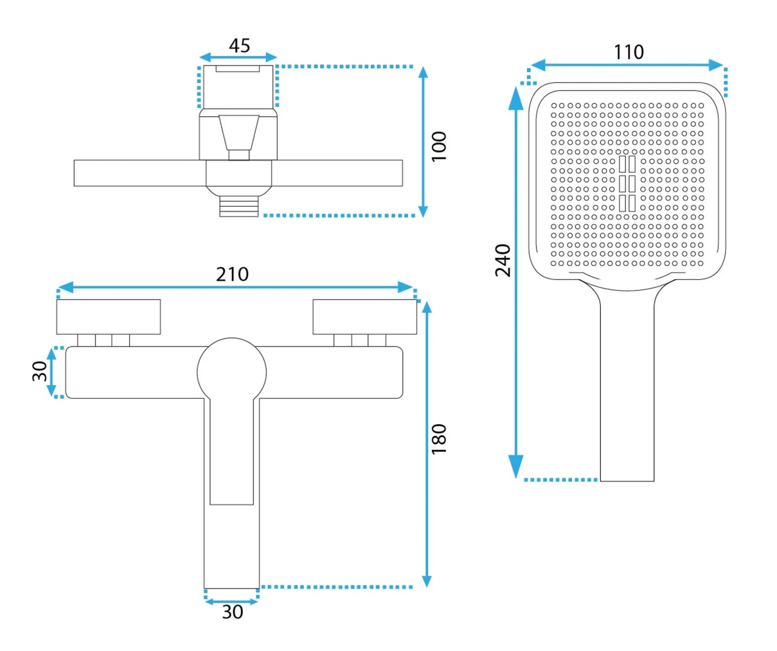 • Setul include: baterie pentru cadă, duș de mână, furtun de duș, suport pentru dușul de mână.