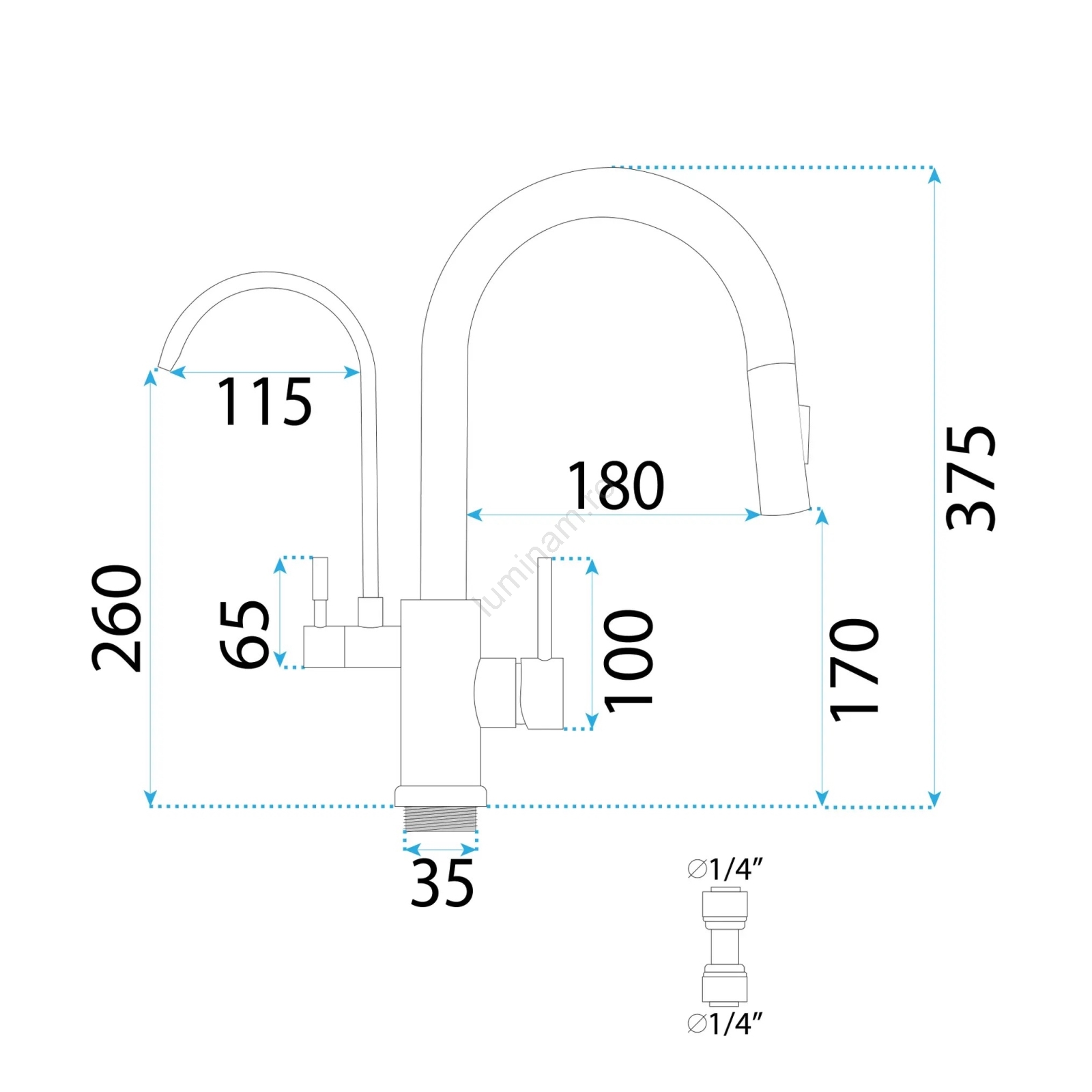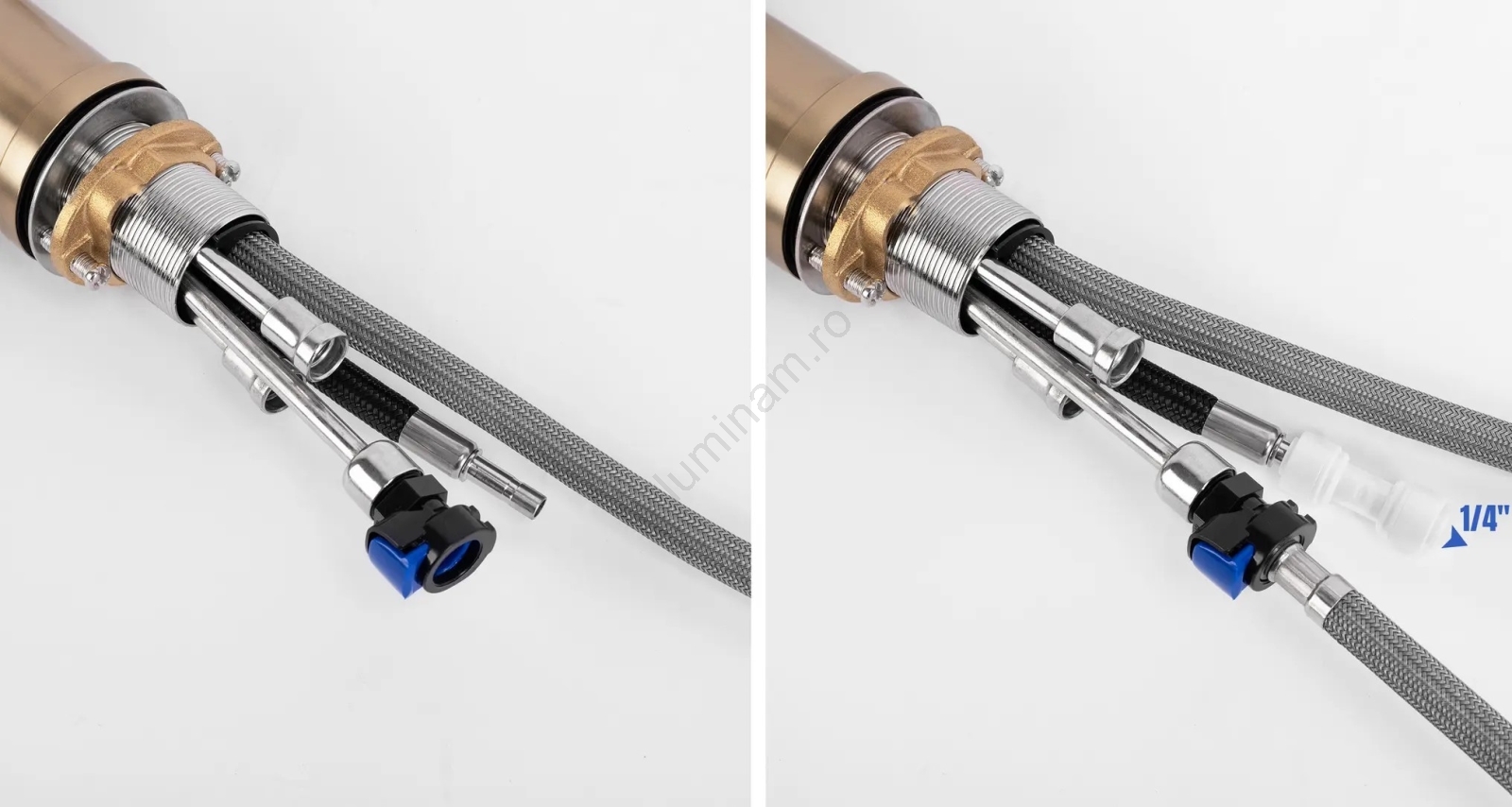 • Posibilitate de conectare la un dispozitiv de filtrare a apei (controlul se face prin pârghia mai mică).
