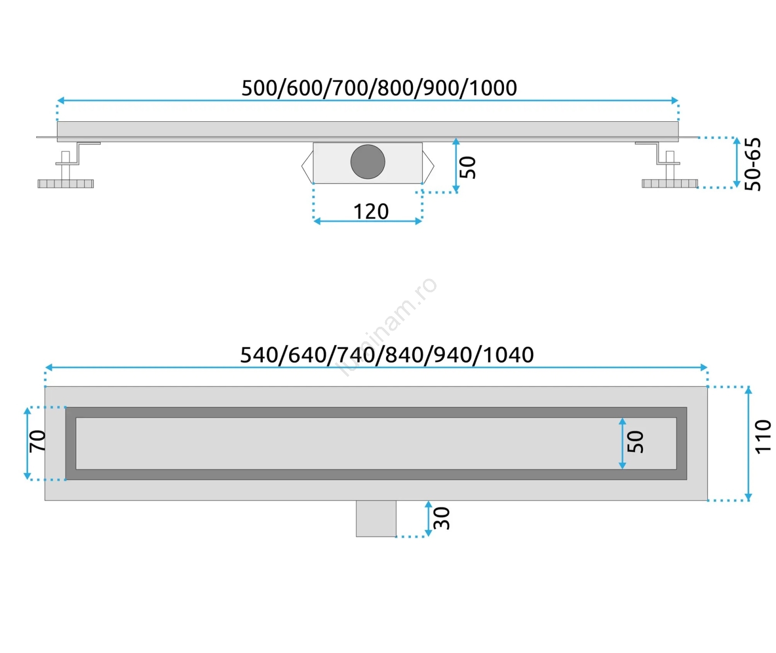 • Rigolă liniară de 70 cm în finisaj negru mat.