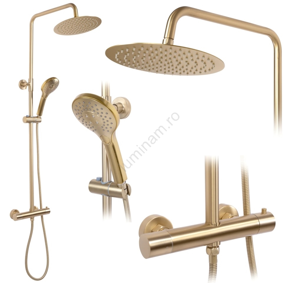 REA-P6602 - Set de duș VINCENT cu baterie termostatică, finisaj auriu periat