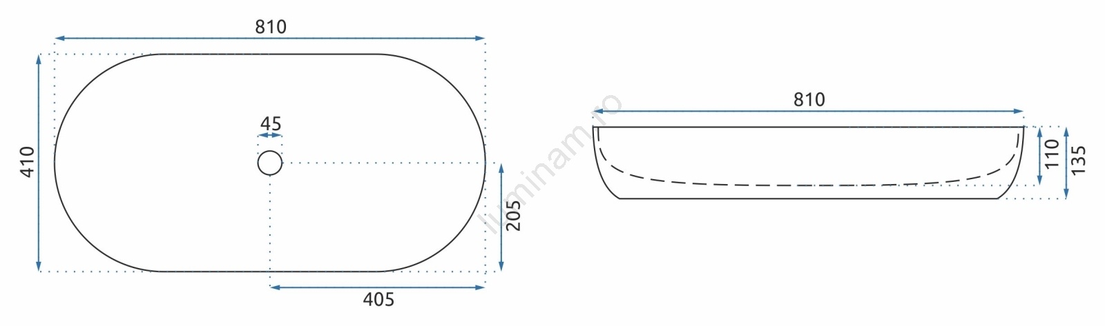 • Lavoarul este fabricat din ceramică sanitară de înaltă calitate.
