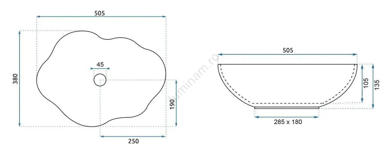 • Lavoarul este fabricat din ceramică sanitară de înaltă calitate.