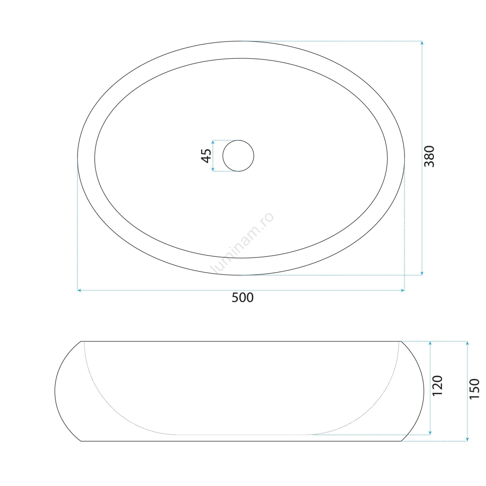 • Lavoar modern și elegant, fără preaplin.