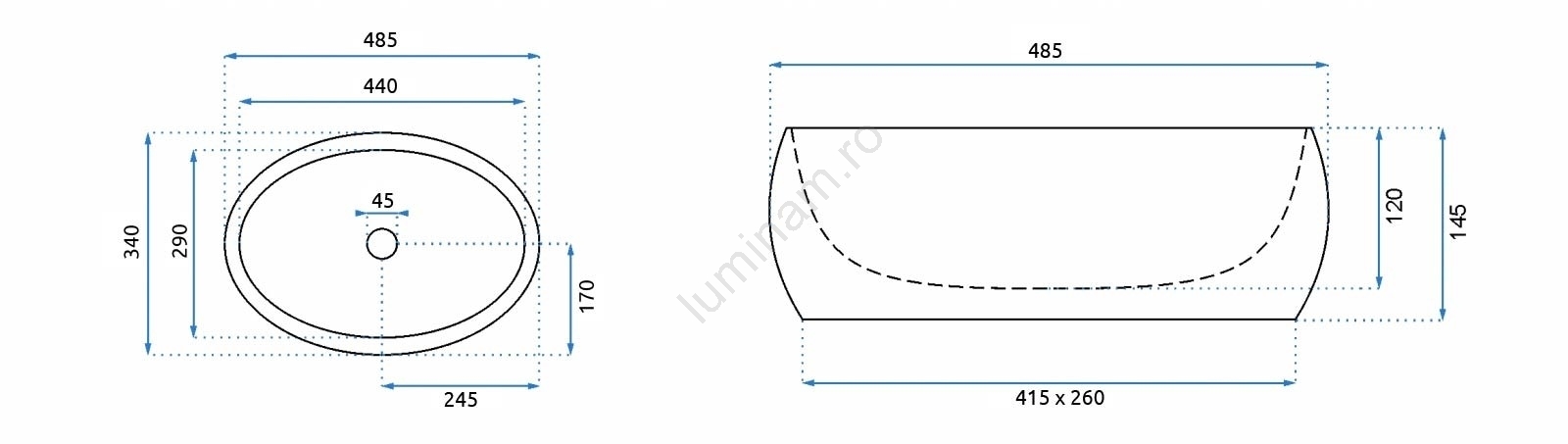 • Lavoarul este fabricat din ceramică sanitară de înaltă calitate.