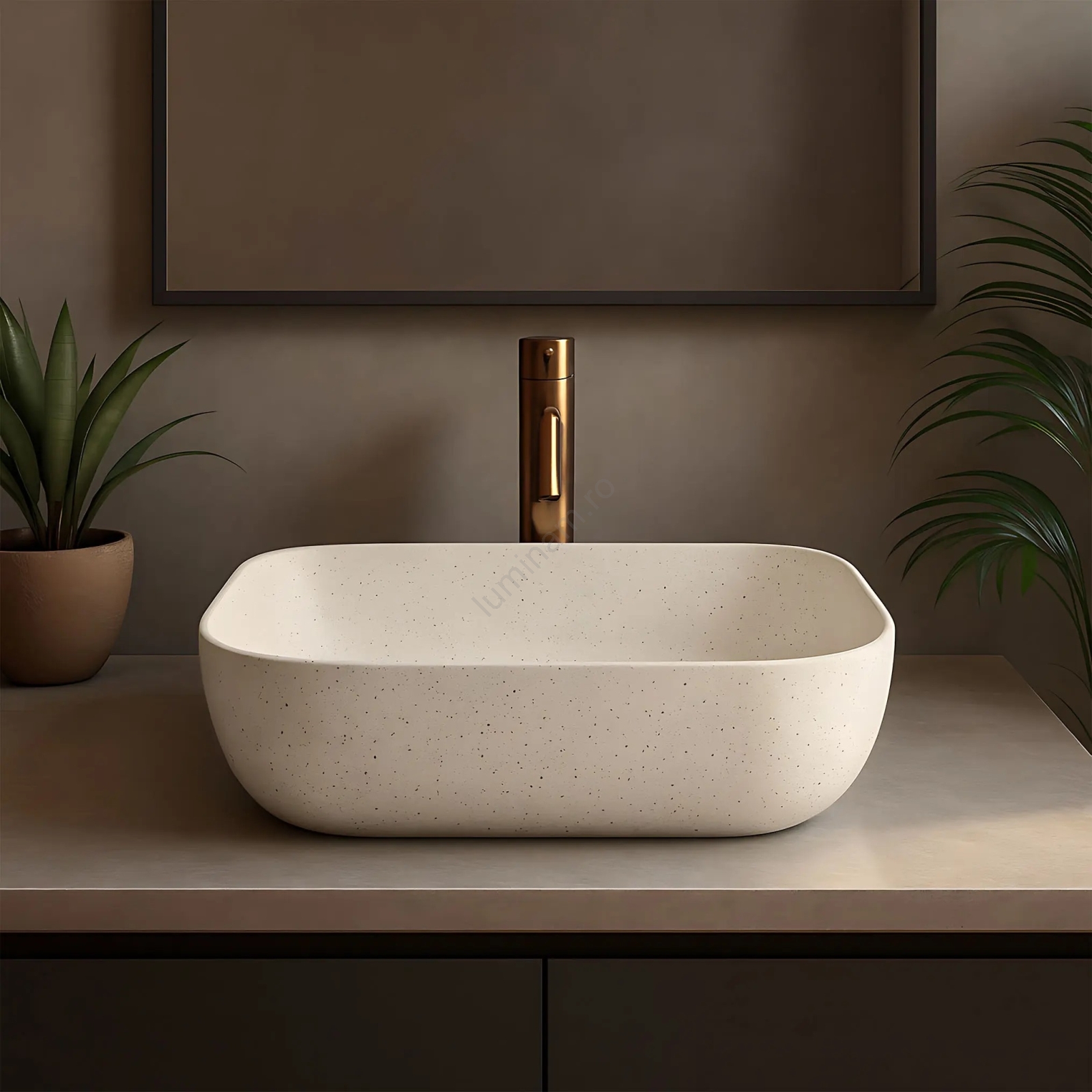 REA-U4000 - Lavoar pentru montare pe blat BELINDA 33 x 46,5 cm, ceramică/imitație de piatră