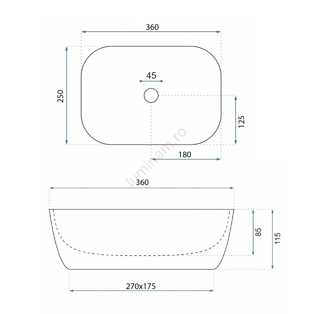 • REA-U5667 - Lavoar pentru blat BELINDA MINI 25x36 cm ceramică/alb lucios