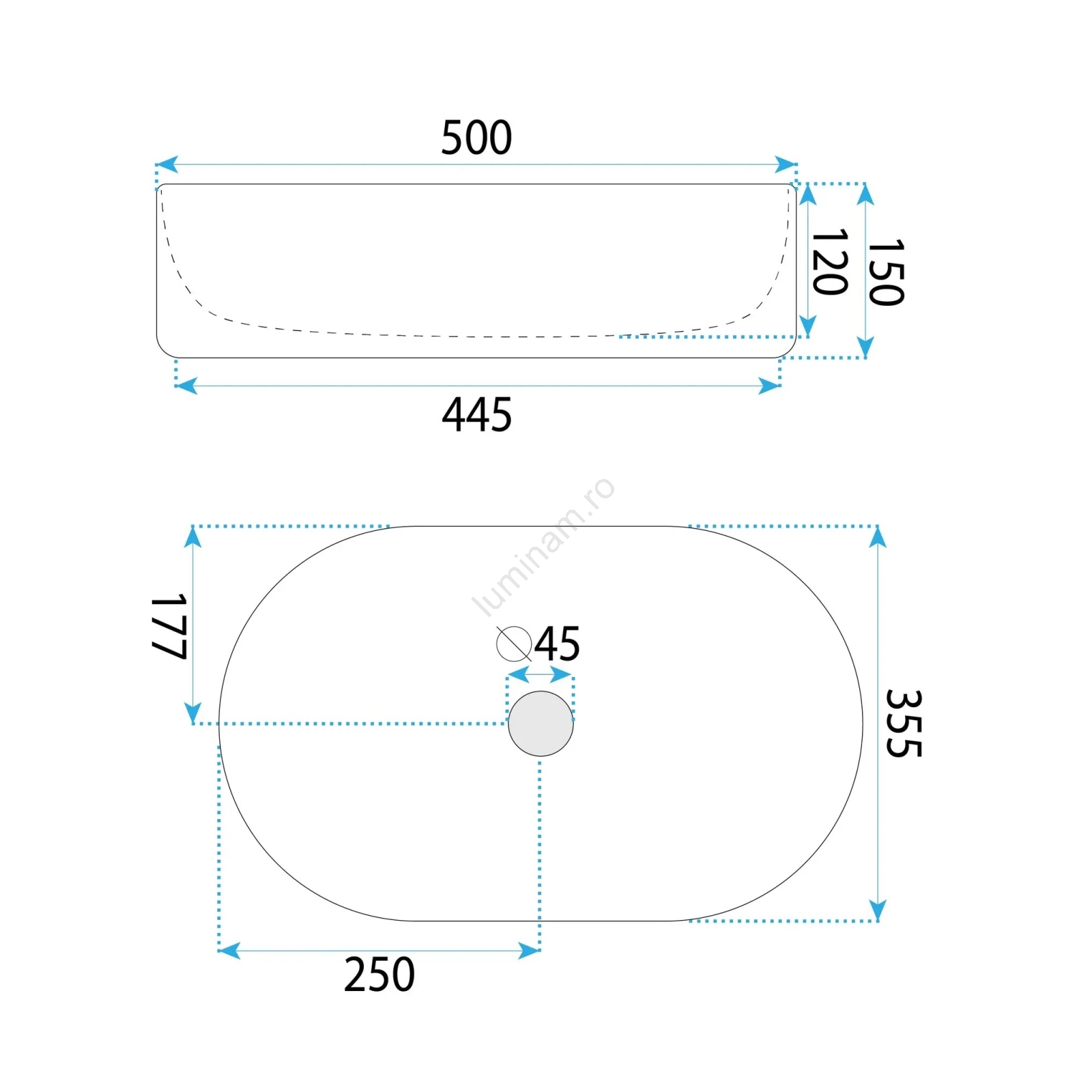 • Lavoar modern și elegant, fără preaplin.