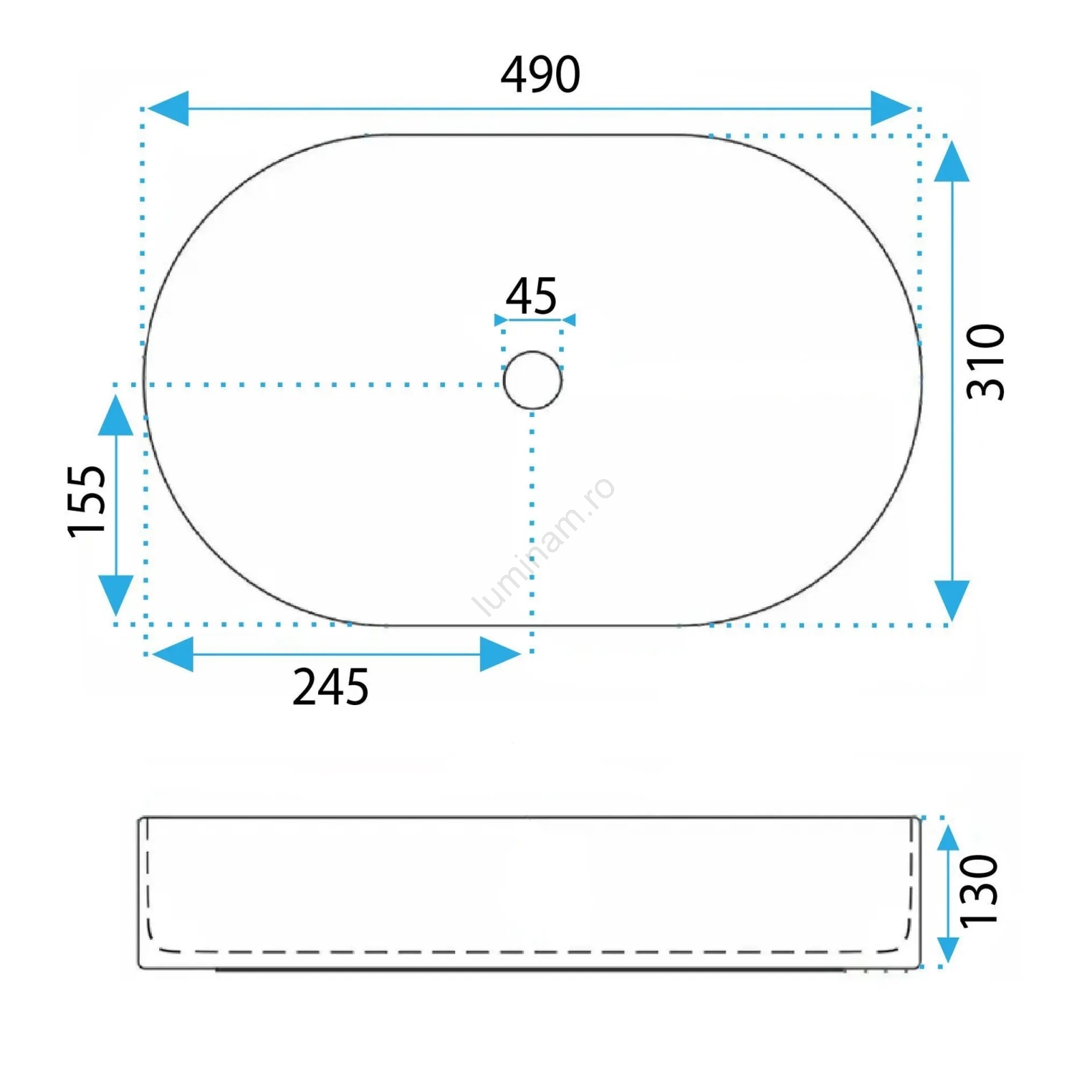 • REA-U3535 - Lavoar VANDA pentru montare pe blat 31x49 cm, ceramică/bleumarin închis