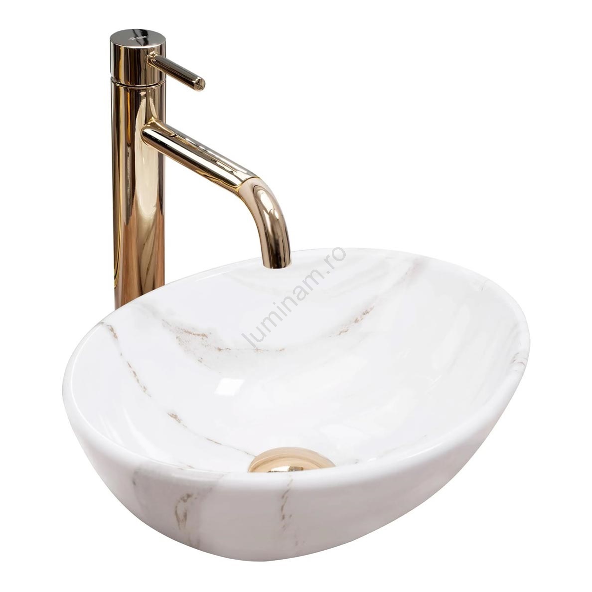 REA-U8014 - Lavoar pentru blat SOFIA MINI, 27 x 34 cm, ceramică cu decor marmură