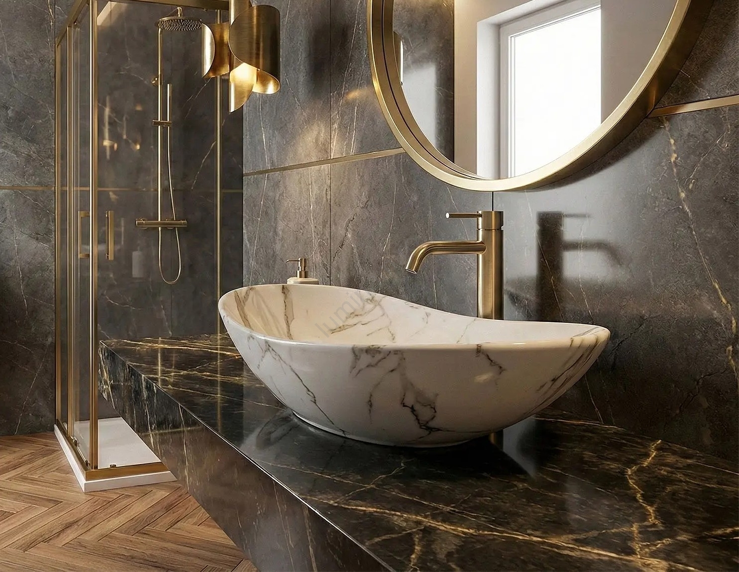 • REA-U4545 - Lavoar pentru blat ROYAL, 36 x 60,5 cm, ceramică/auriu