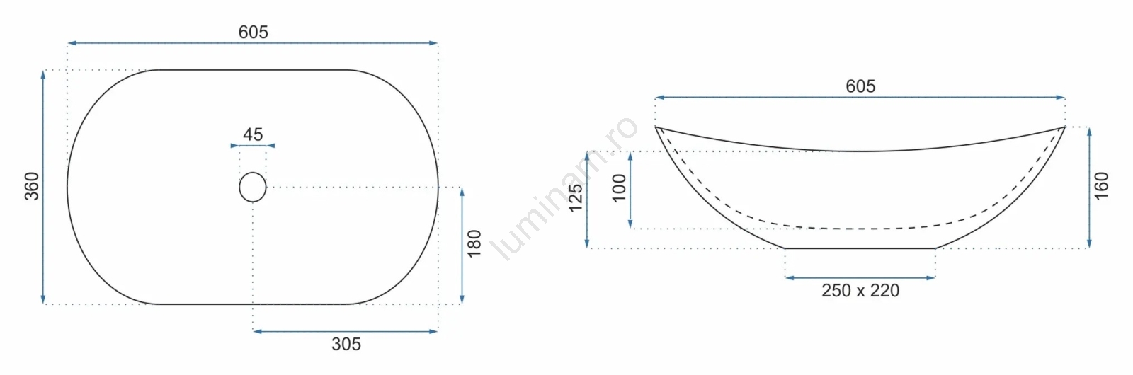 • Lavoar modern și elegant, fără preaplin.