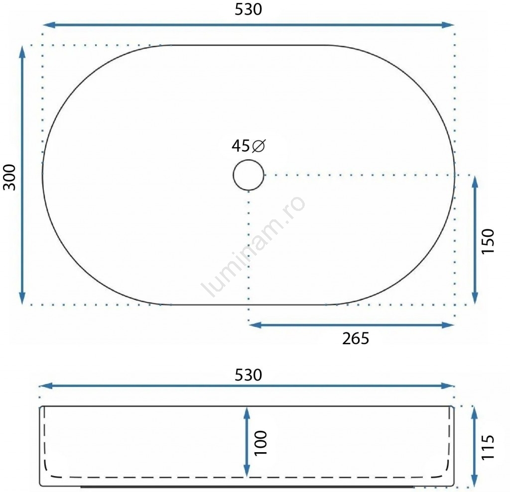 REA-U9108 - Lavoar LAYLA pentru blat 30x53 cm ceramică/alb lucios