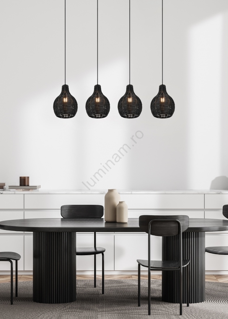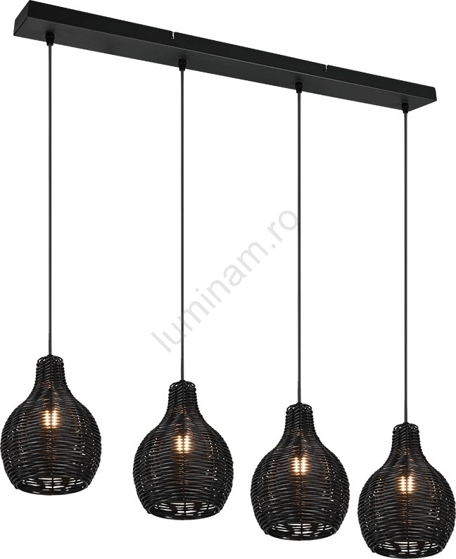 Reality - Lustră pe cablu SPROUT 4xE14/30W/230V negru/ratan