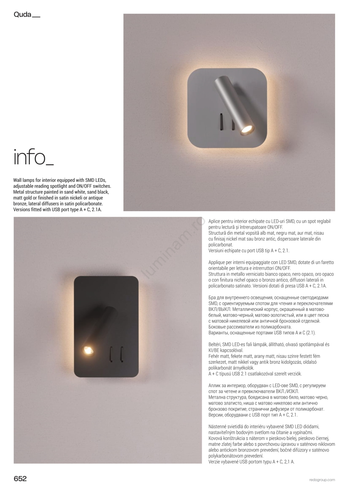 • Redo 01-2978 - Aplica de perete QUDA LED/6W/230V + LED/3W, 3000K, CRI 90, crom mat