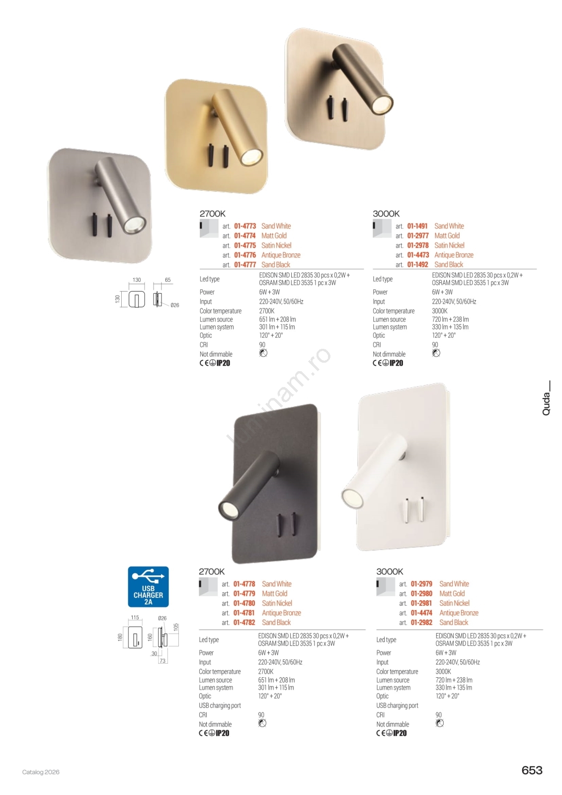 • Redo 01-4473 - Aplică de perete QUDA LED/6W/230V + LED/3W CRI 90, finisaj bronz