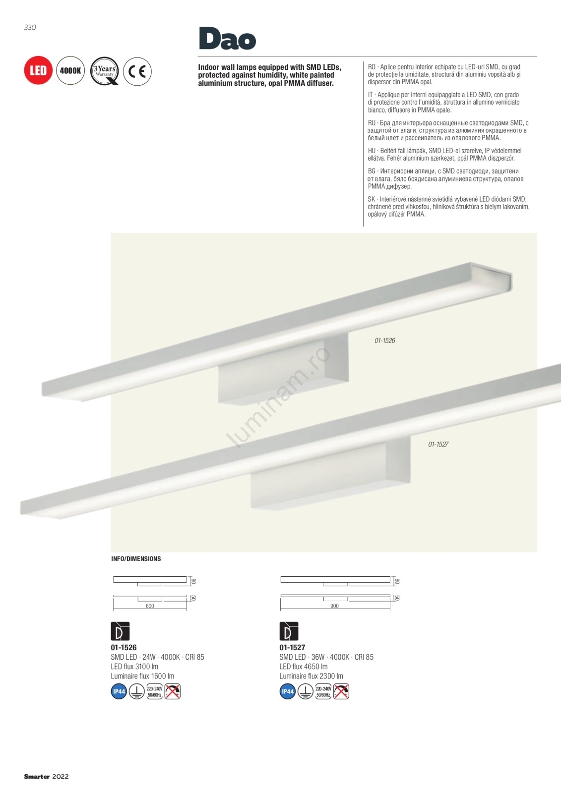 Redo 01-1527 - Corp de iluminat LED pentru oglindă de baie DAO, 36 W, 230 V, 90 cm, IP44, alb