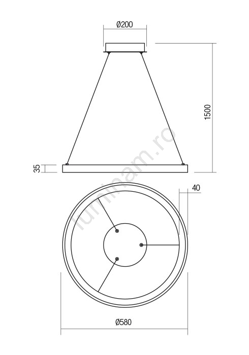 • Lustră LED dimabilă pe cablu Redo 01-2674 ICONIC LED/50W/230V d. 58 cm negru