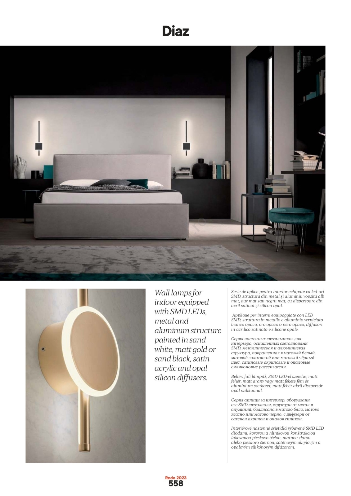 • Redo 01-2696 - Aplica LED de perete DIAZ, 20W, 230V, CRI 90, albă