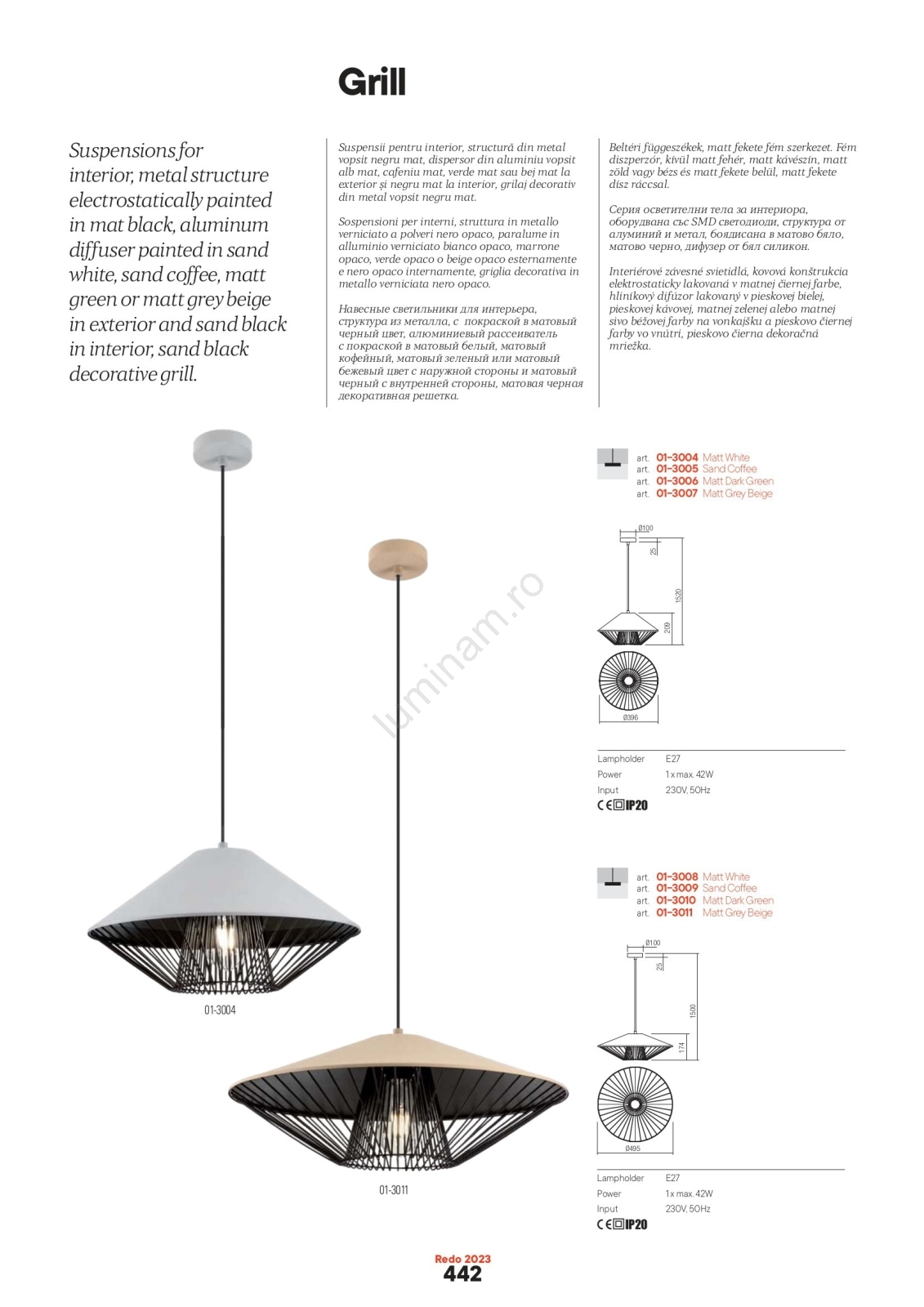 • Redo 01-3008 - Pendul pe cablu GRILL 1x E27/42W/230V, Ø 49,5 cm, negru/alb