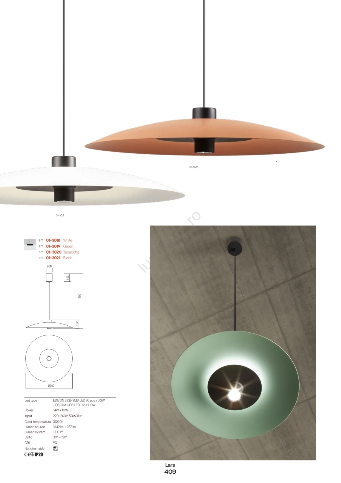 • Redo LARS 01-3019 – lustră LED suspendată pe cablu, LED 14W/230V + LED 10W, Ø 60 cm, CRI 90, verde