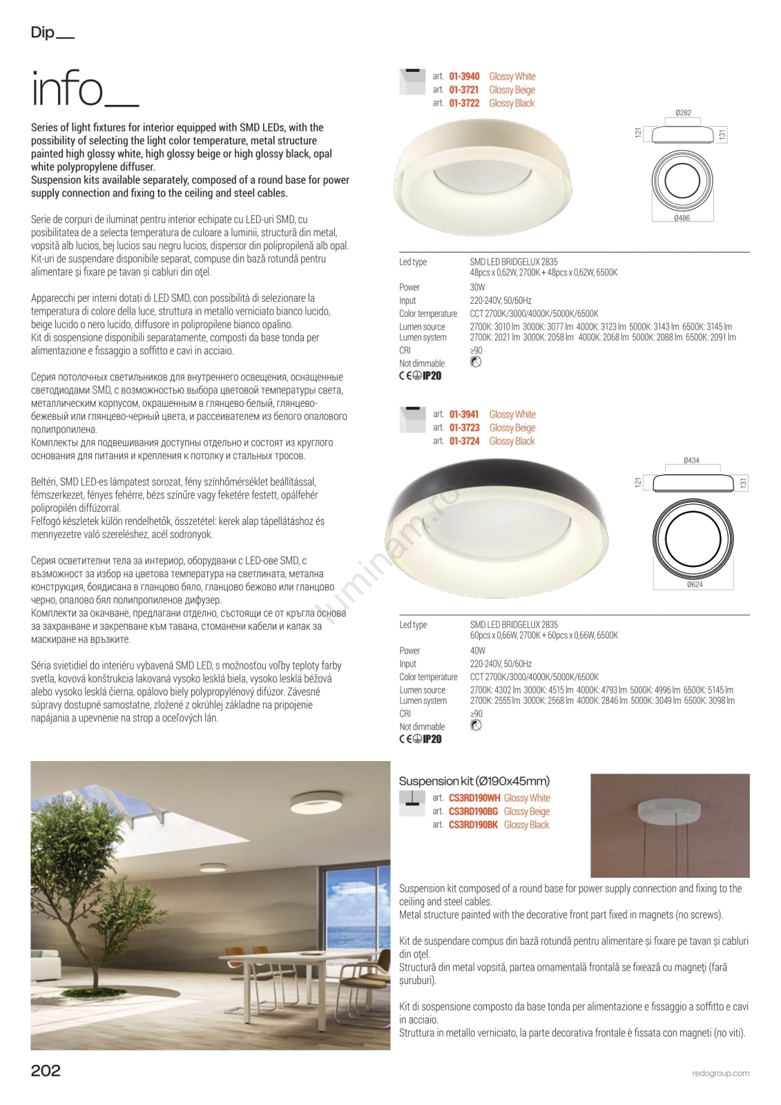 • Redo 01-3940 - Plafonieră LED DIP, 30W, 230V, 2700/3000/4000/5000/6500K, CRI 90, Ø 48,6 cm, alb