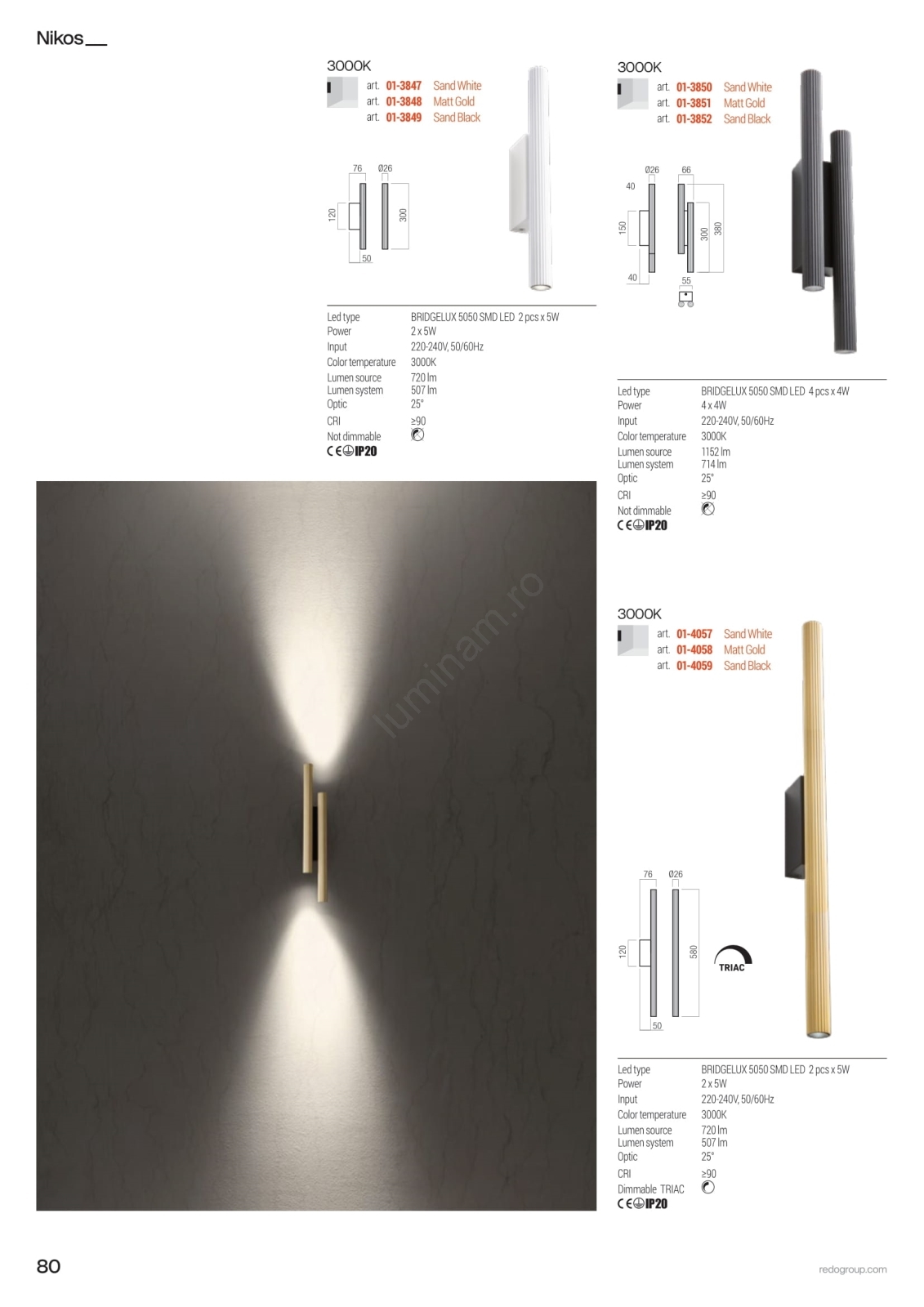 • Redo 01-4057 - Aplica de perete LED NIKOS, dimabilă, 10W, 230V, 3000K, CRI 90, alb