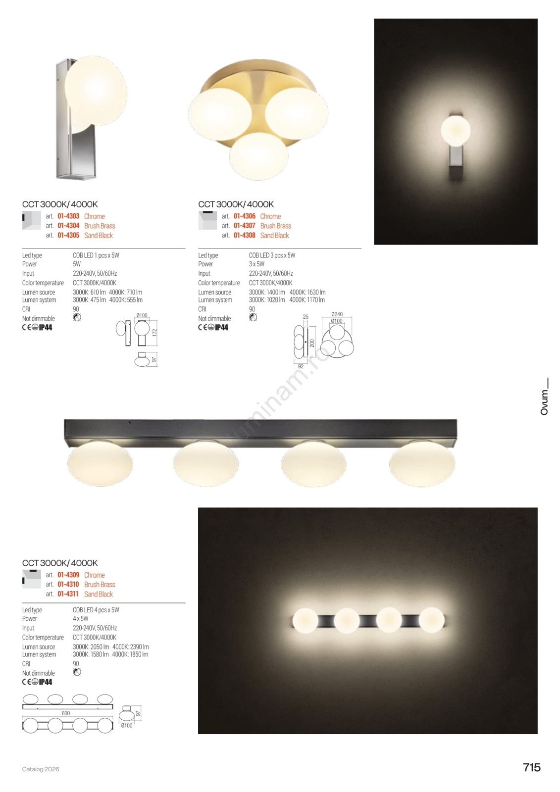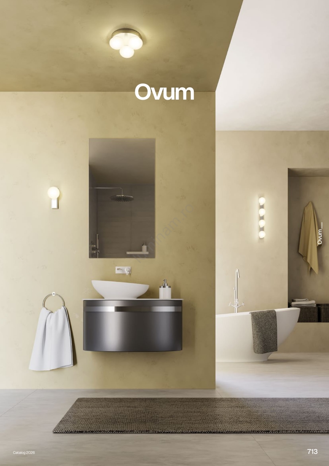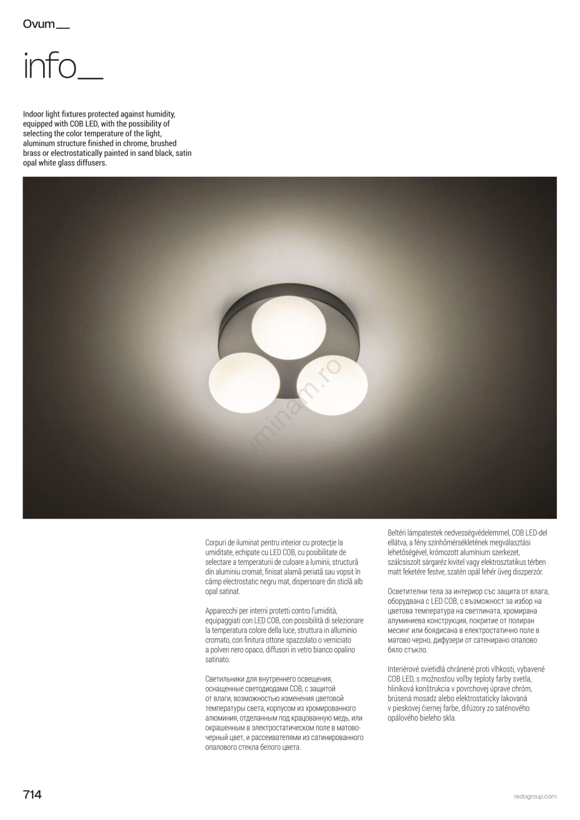 • Redo 01-4307 - Plafonieră LED OVUM pentru baie, 3xLED/5W/230V, 3000/4000K, CRI 90, Ø 24 cm, IP44, alb/alamă