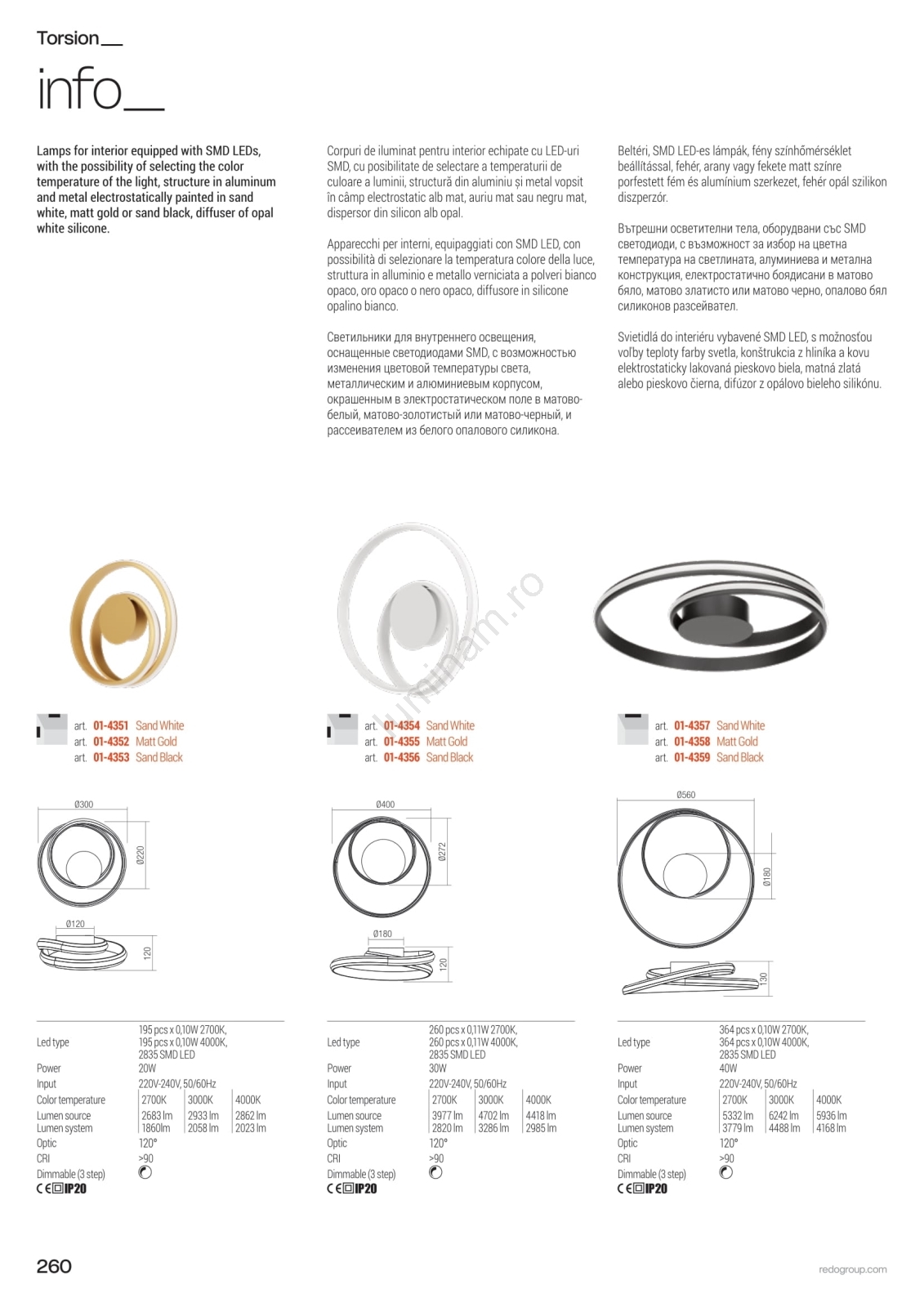 • Redo 01-4355 - Aplică de perete LED dimabilă TORSION LED/30W/230V 2700/3000/4000K CRI 90 auriu