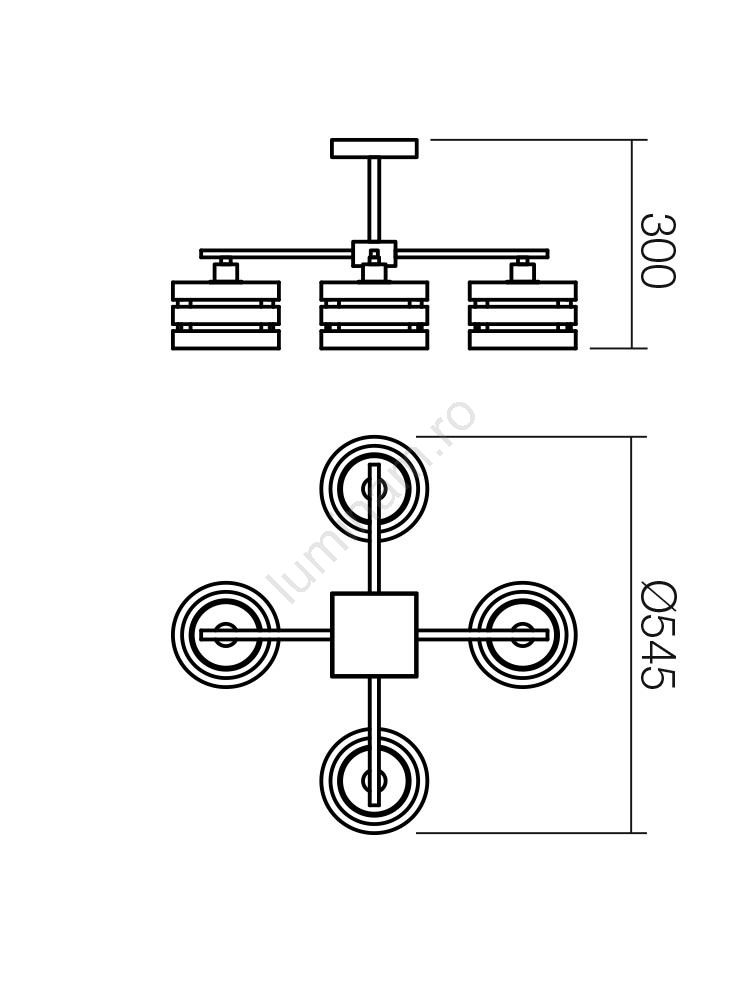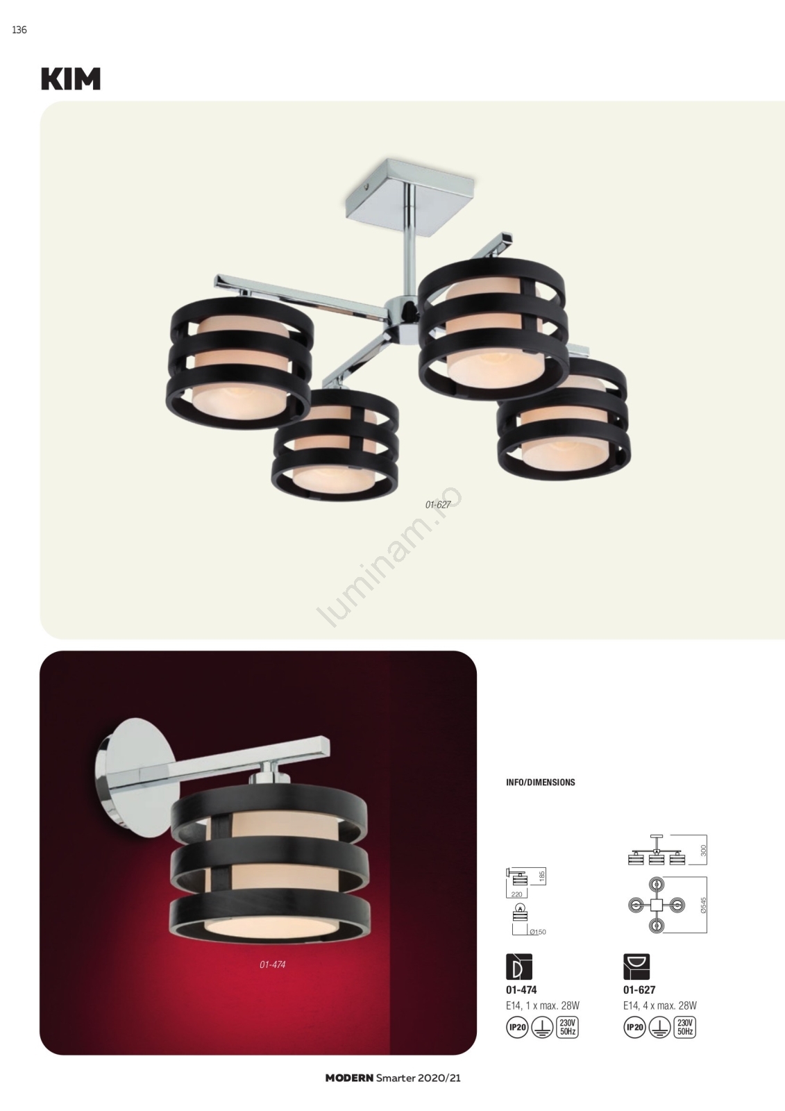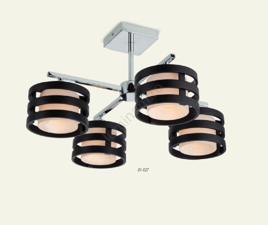 Redo 01-627 - Lustră cu tijă KIM, 4 x E14, 28 W, 230 V, crom lucios/negru