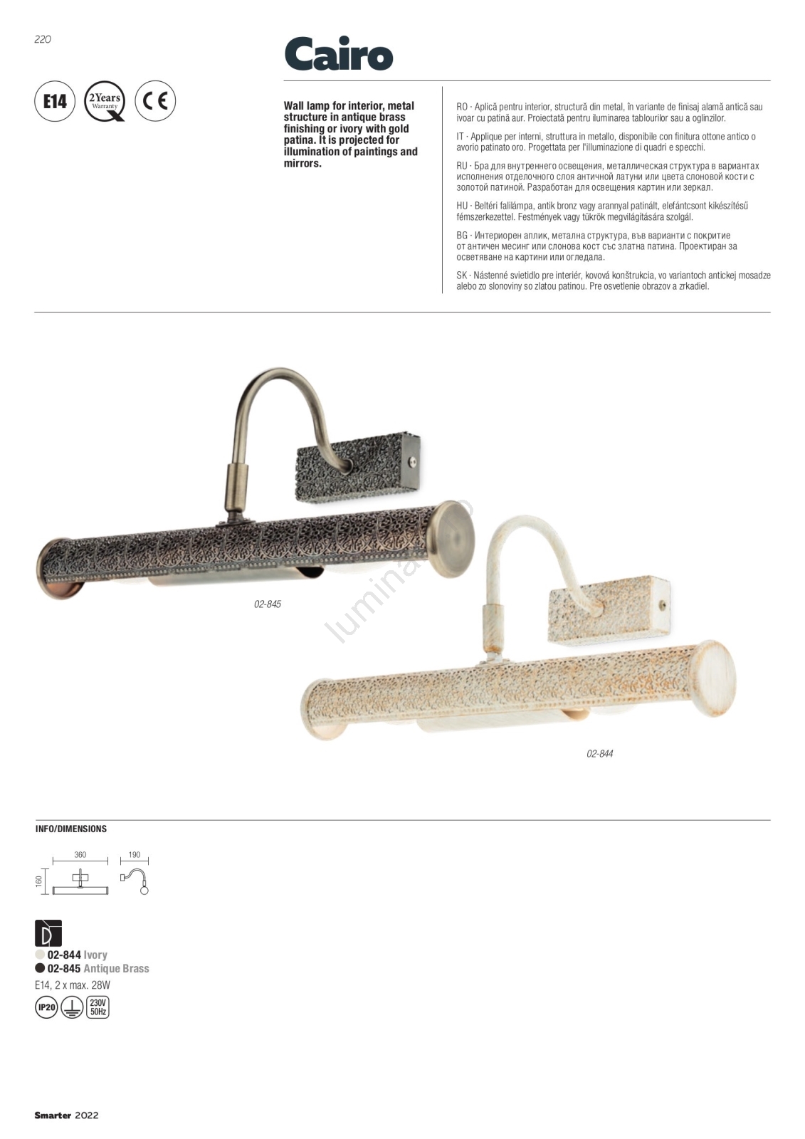 • Redo 02-845 - Lampă pentru tablouri CAIRO, 2xE14/28W/230V, 36 cm, alamă