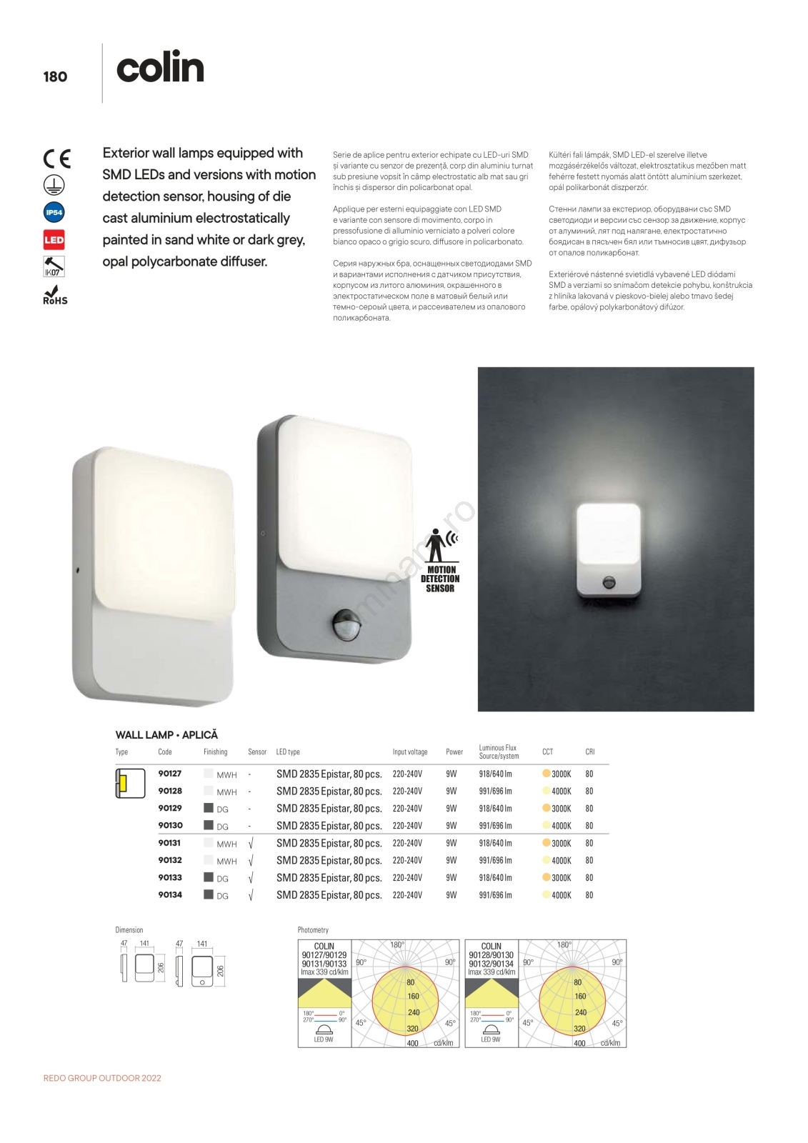 • Redo 90134 - Aplică de exterior LED COLIN, 9W/230V, 4000K, IP54, antracit, cu senzor de mișcare și senzor de amurg