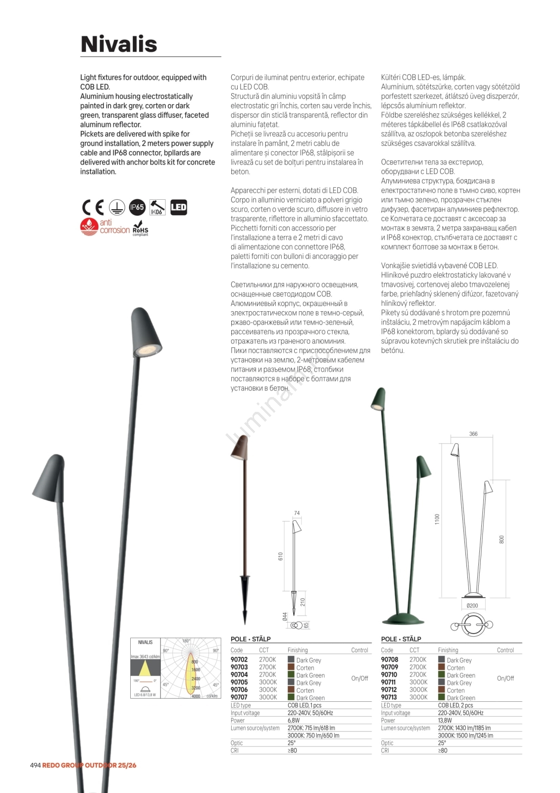• Redo 90711 - Lampă LED de exterior NIVALIS, 2x LED, 6,9 W, 230 V, 3000 K, 110 cm, IP65, antracit