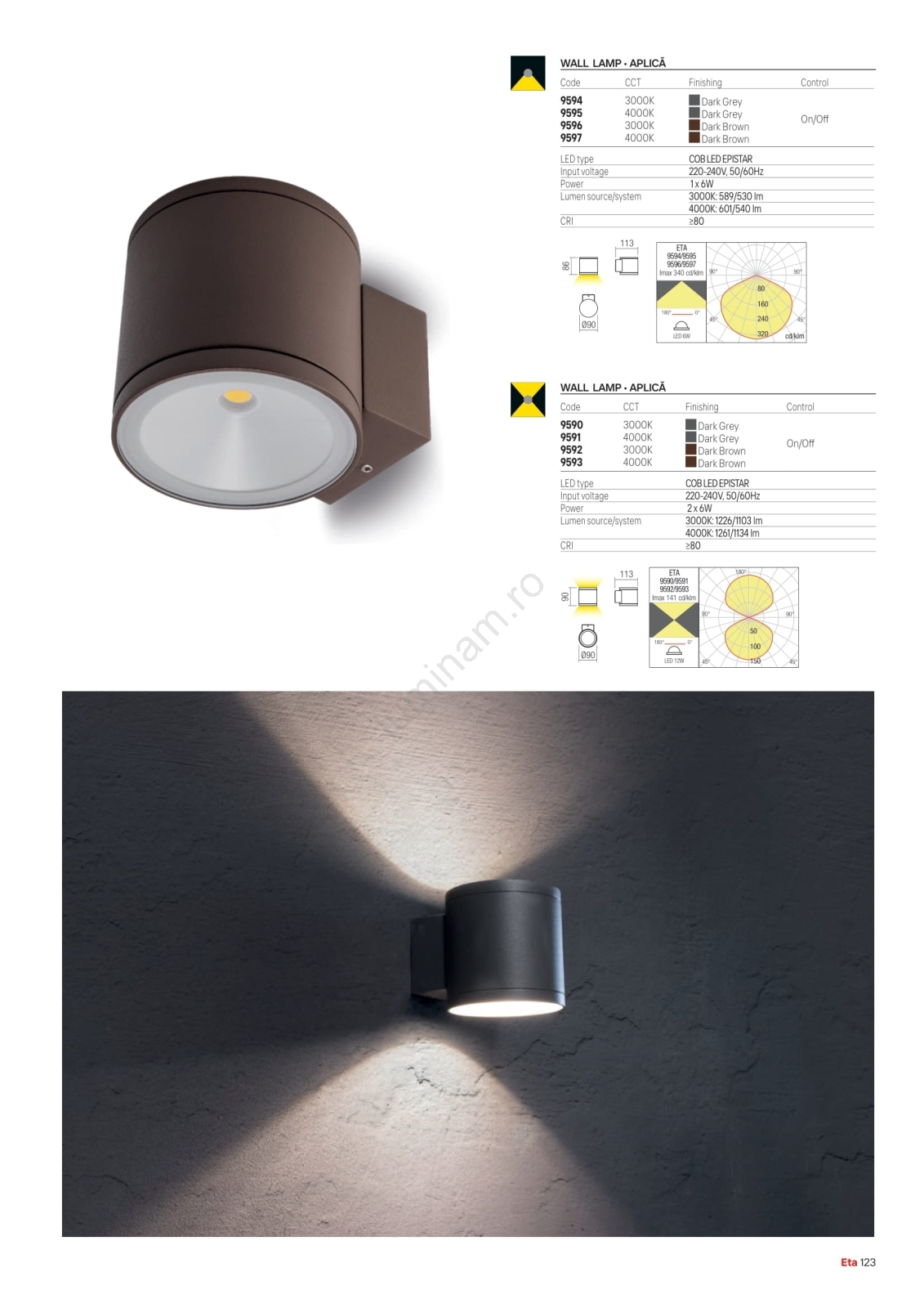 Redo 9596 - Aplică LED de exterior ETA, 6W, 230V, 3000K, IP54, maro